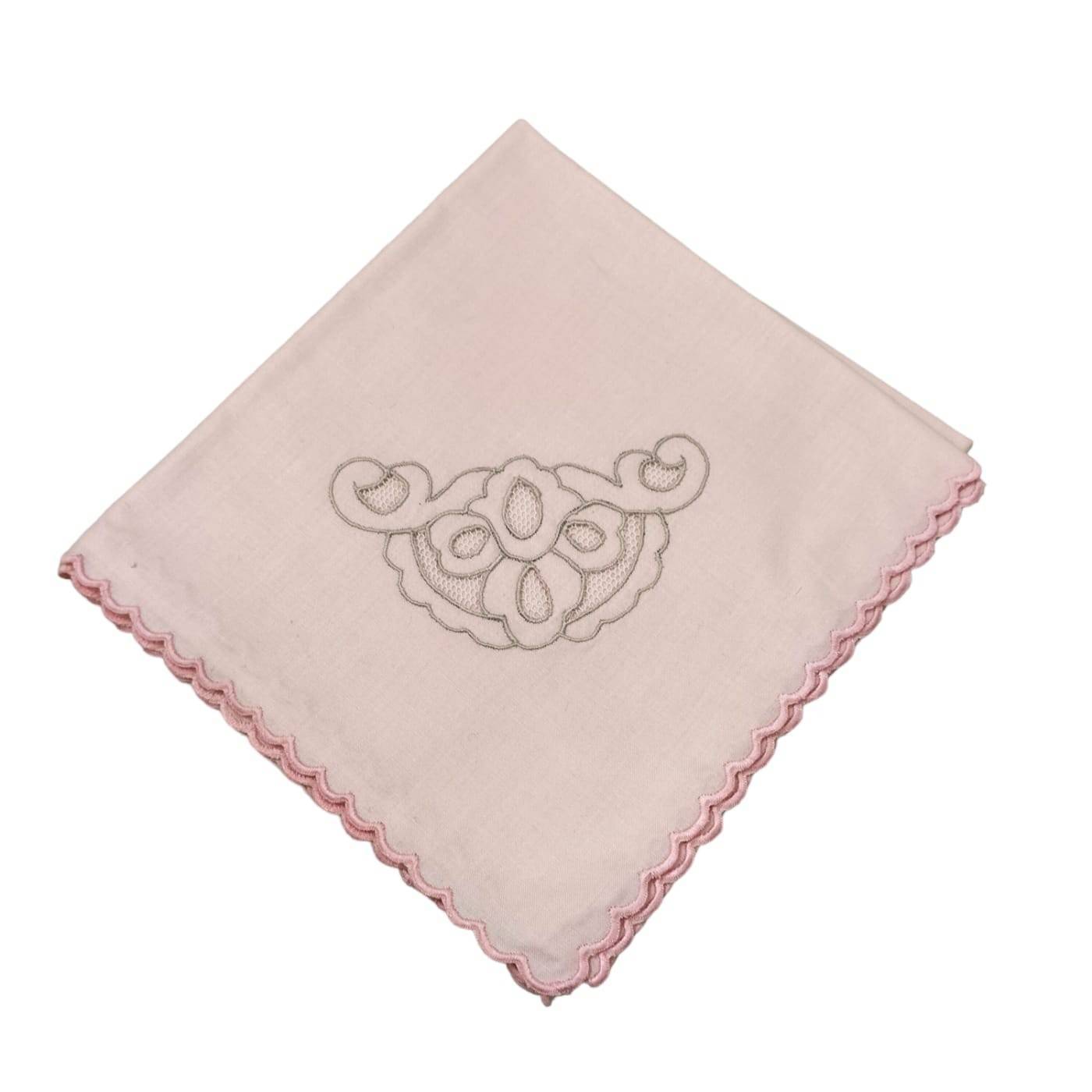 Elegantes Quadrat aus rosa Baumwollbatist mit einer Ton-in-Ton-Muschel, die an einer Ecke mit beigem Tüll bestickt ist. Aus Bio-Baumwolle hergestellt, sind sie extrem weich auf Babys zarter Haut, atmungsaktiv und saugfähig. Nützlich ab den ersten Lebensstunden des Babys und vielseitig einsetzbar: zum Stillen; als Sommertuch; zum Abtrocknen des Gesichts, der Hände... nach dem Baden; im Sommer für Autositze und Kinderwagen; zum Abstützen auf der Schulter der Mutter beim Bäuerchen...