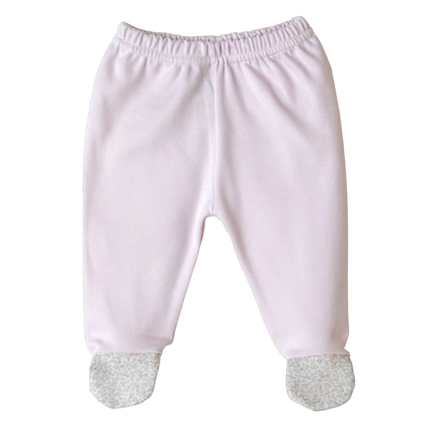 Schönes Set für Neugeborene der Marke Baby gi aus rosafarbenem Baumwolljersey mit Details aus Baumwollstoff in einem zarten Blumenmuster.