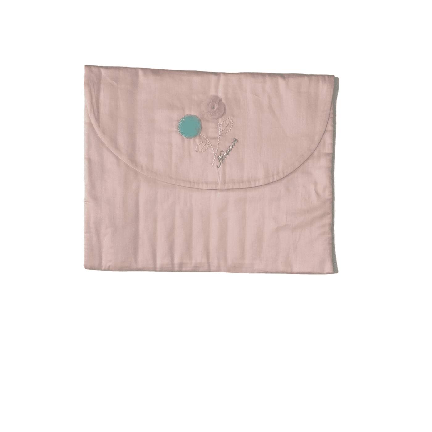 Diese Wickeltasche eignet sich sowohl für die Mitnahme ins Krankenhaus zum Wickeln als auch für die spätere Aufbewahrung der Wickelutensilien bei Ausflügen. Hergestellt aus reiner rosa Baumwolle, im oberen Teil finden wir zwei Blumen aus rosa und hellblauem Tüll.
