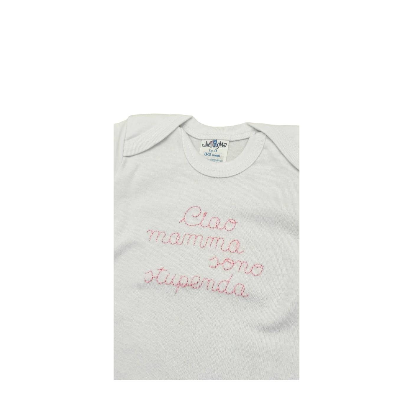 Lote de 3 bodies de manga larga para recién nacidos en 100% algodón, fondo blanco y bordado rosa con frases