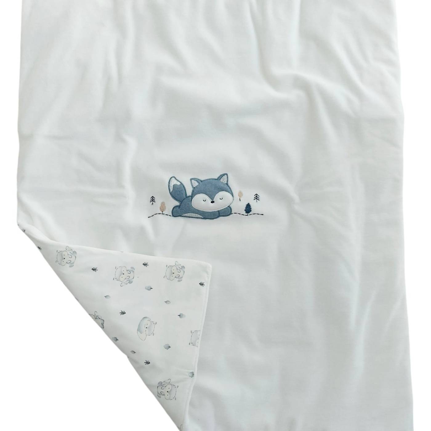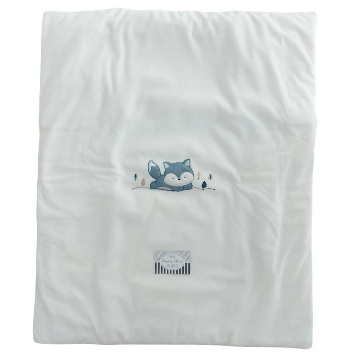 Para la llegada de tu principito elige esta canastilla de recién nacido de 13 piezas: manta de chenilla azul claro con edredón interior; sábana de algodón 100% con funda de almohada y bajo con esquinas; albornoz triangular de algodón de rizo blanco; bolso cambiador; cuadrito de algodón; gorrito de chenilla azul claro; pijama de chenilla talla 0/3 meses; braguita de algodón; blusa de la suerte de algodón blanco; babero de la suerte de seda blanco; body de algodón blanco; y cuadrito de algodón de gasa blanco. En casi todos los artículos hay un bordado azul claro con las palabras "Principito" y una corona bordada en plata. Composición: cubrepañal, gorrito y pelele 80% algodón 20% poliamida.