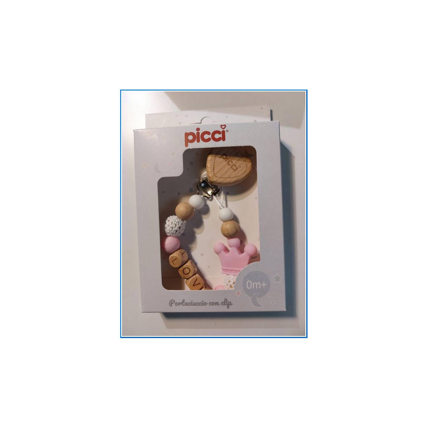 Portachupetes de madera Talco Rosa