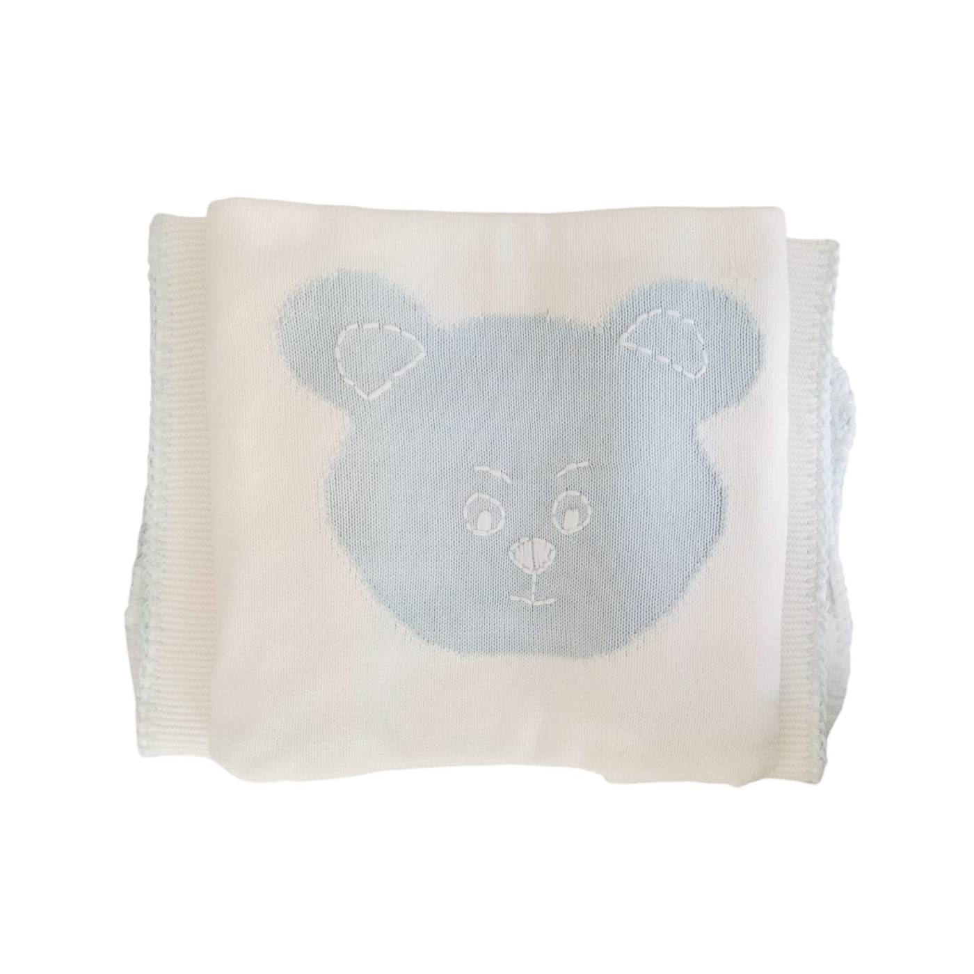 Cubrepañal muy suave de hilo de algodón de doble capa, fondo blanco con osito azul claro central.