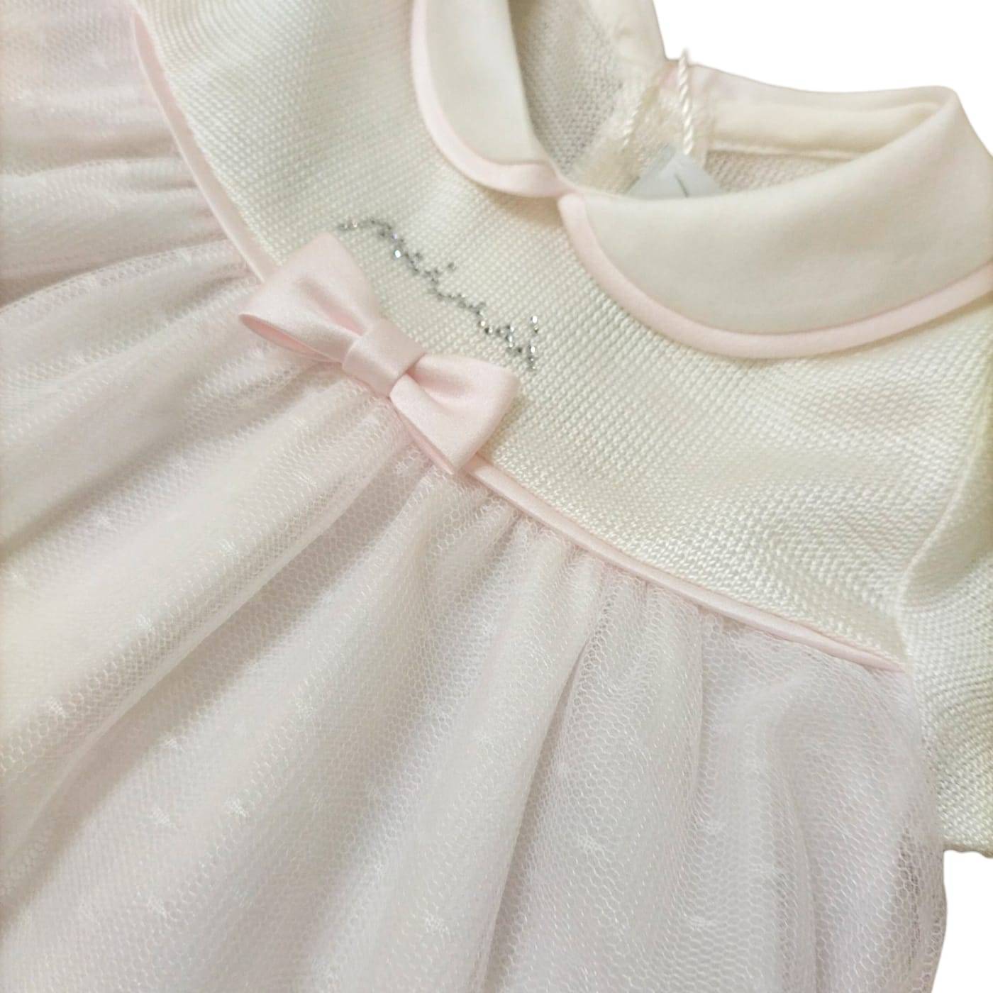 Si quieres dar la bienvenida a tu bebé como una princesa sin renunciar a la calidad de los tejidos y a la fabricación totalmente italiana, ¡este conjunto para recién nacido es tu elección!