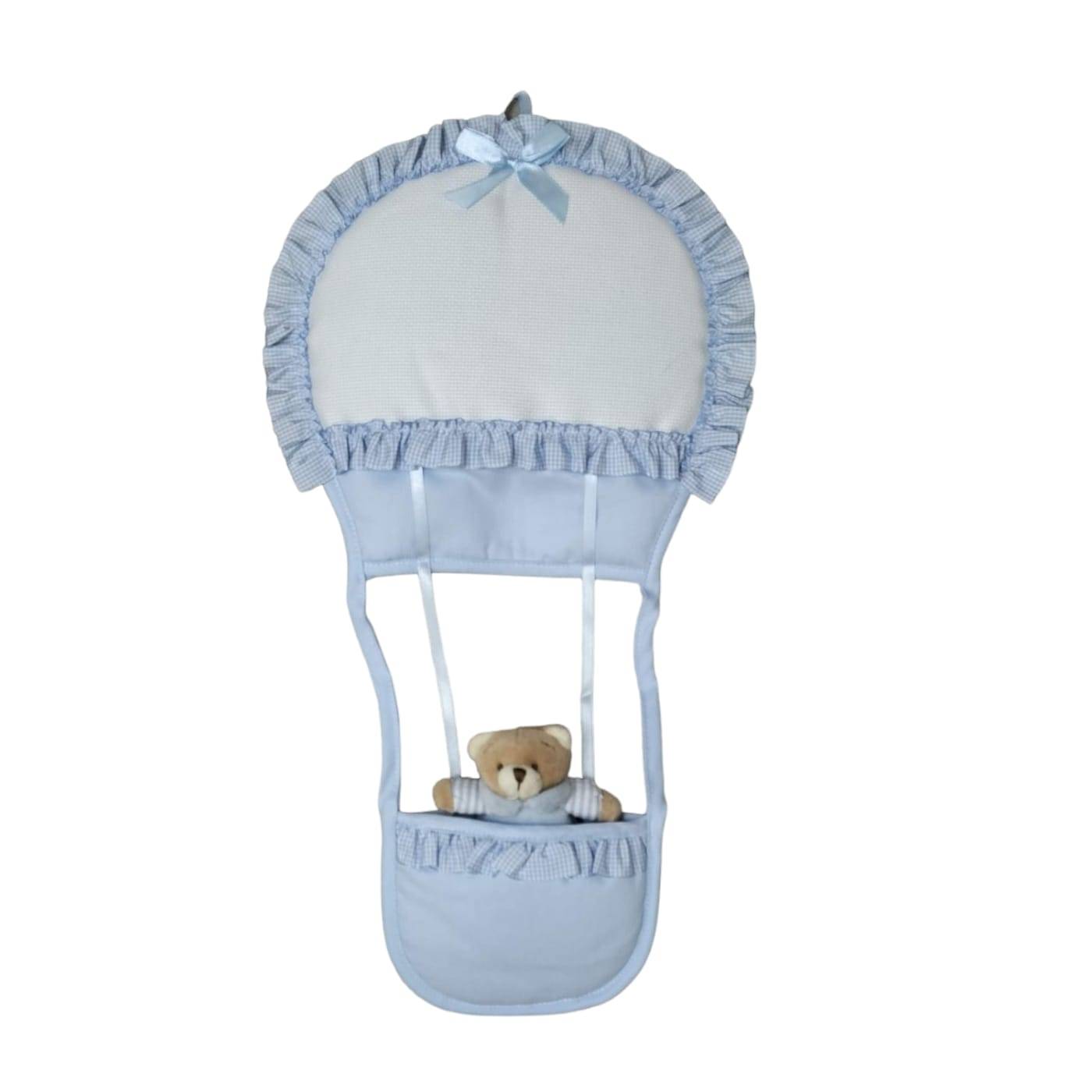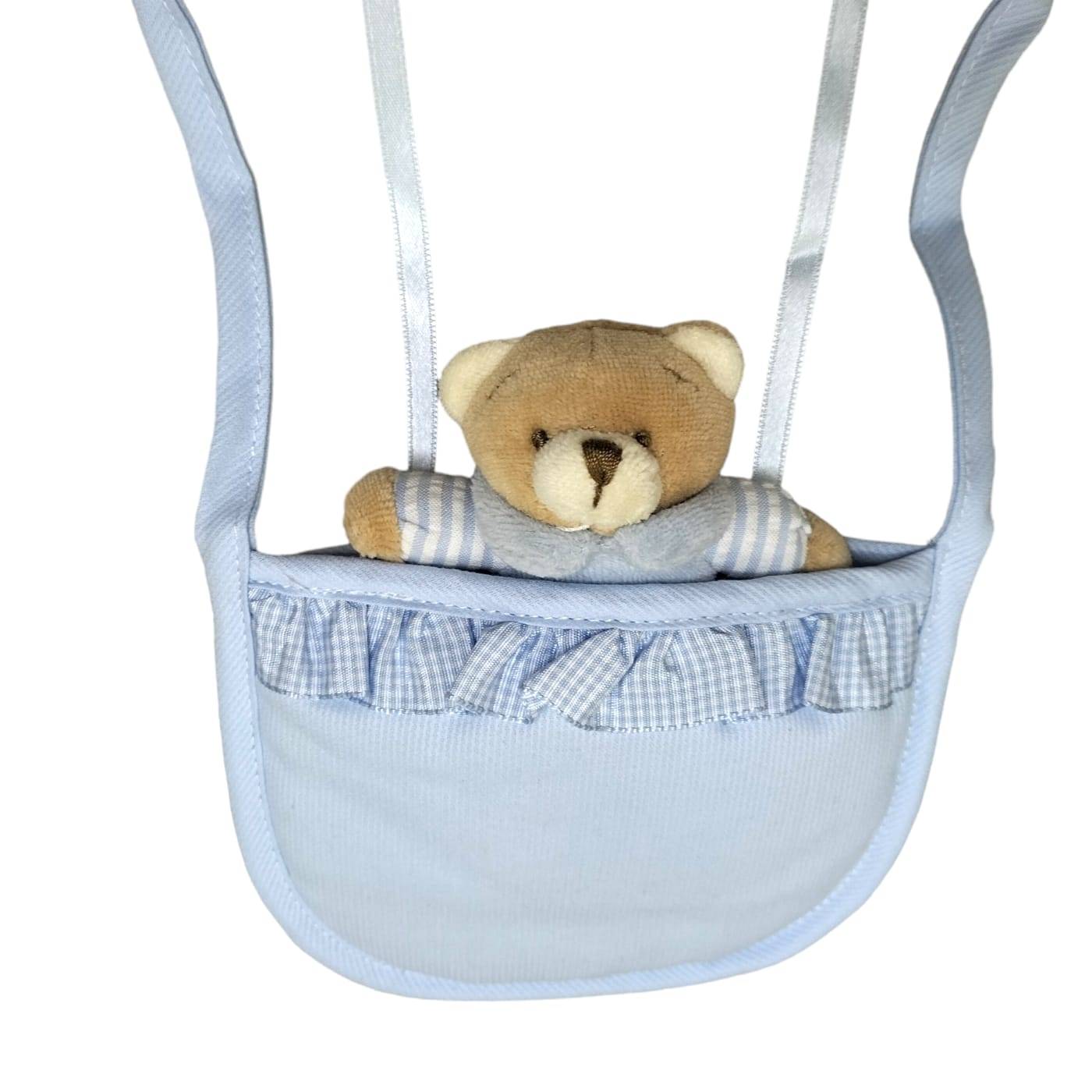 Nœud de naissance, rosette en forme de ballon avec ours en peluche pour accueillir un petit garçon.