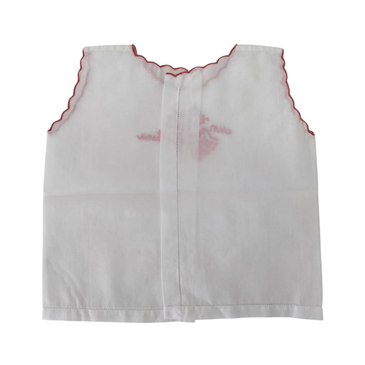 Retravaillé avec un petit feston doux sur le col et les manches.