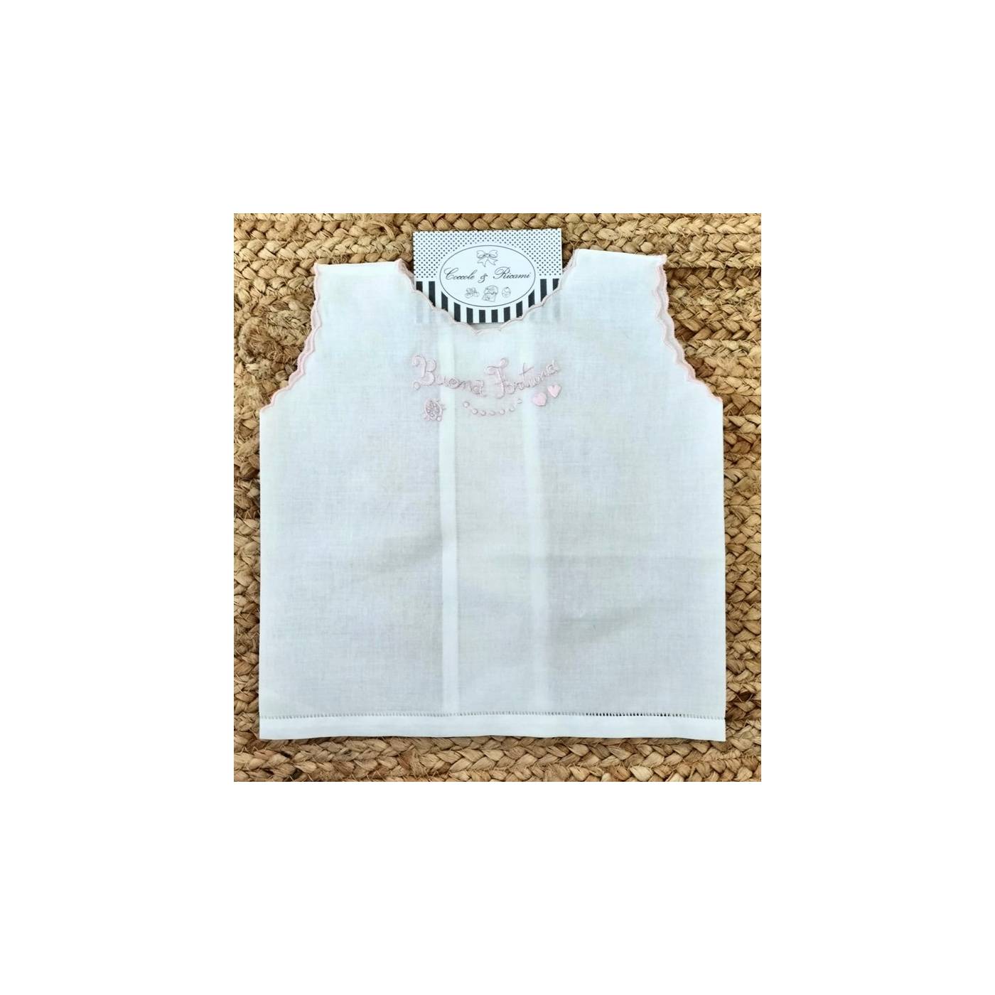 Réalisée sur une base 100% pur coton en blanc et brodée à la main en rose avec l'inscription : "Good Luck".