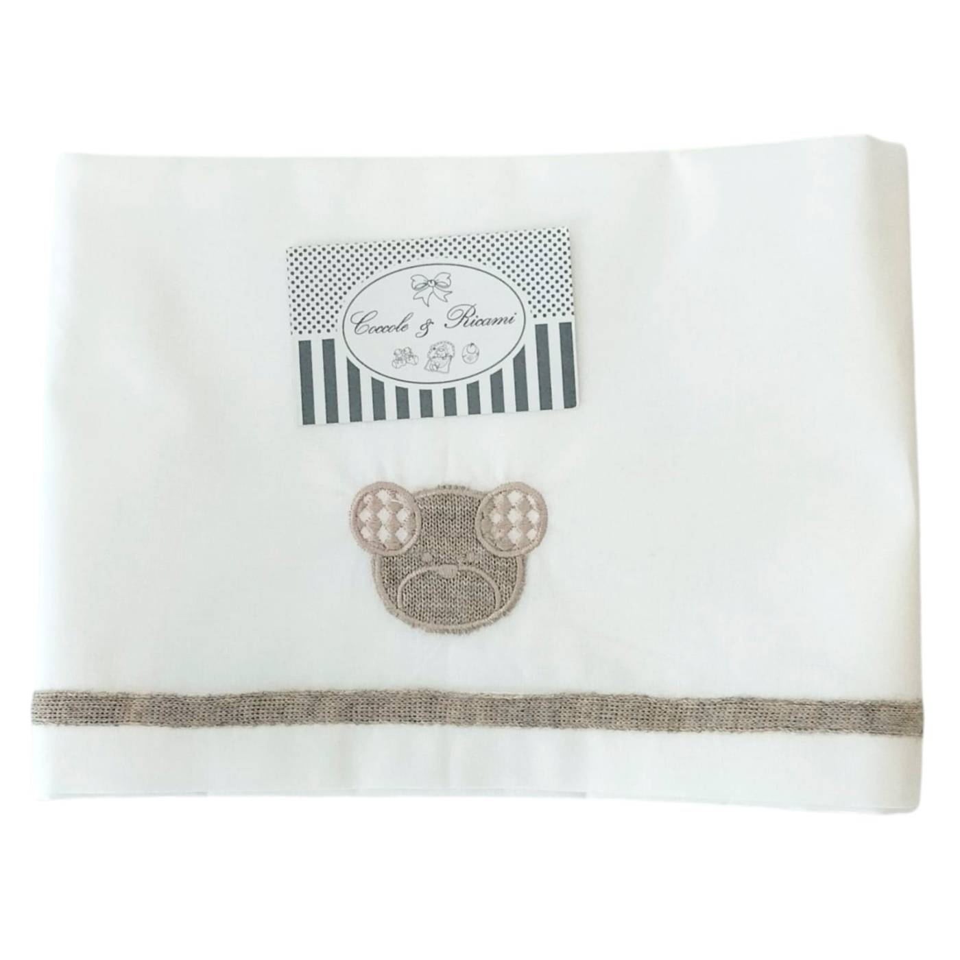 L'ensemble comprend : une housse en chenille doublée au dos en coton, mesurant environ 107*72 cm ; une housse 2 pièces avec une petite ghettina, la taille 1 mois correspond à 56 cm ; un drap 100% coton blanc avec dessous et une taie d'oreiller ; enfin les accessoires, bavoir et bonnet, ce dernier indispensable dès les premières heures de vie du bébé.