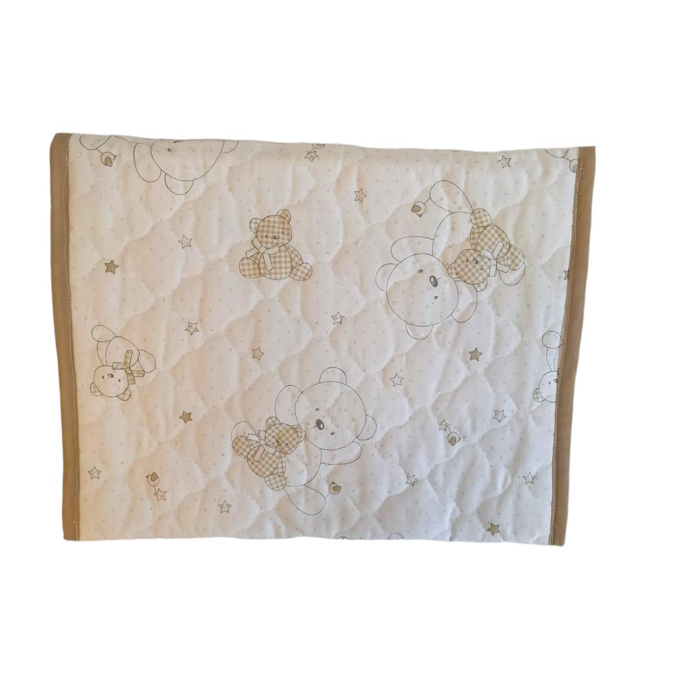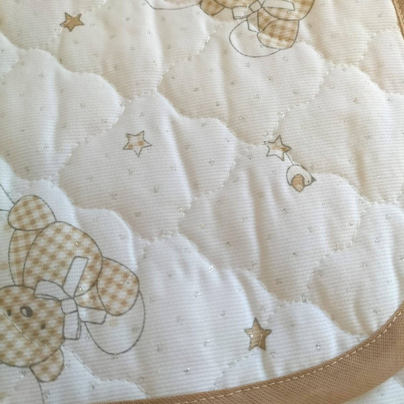 Sac à langer en coton aux couleurs neutres bordées d'un biais gris tourterelle convenant aussi bien aux garçons qu'aux filles. A emporter à l'hôpital pour y mettre ses vêtements à langer et ensuite pour les sorties.
