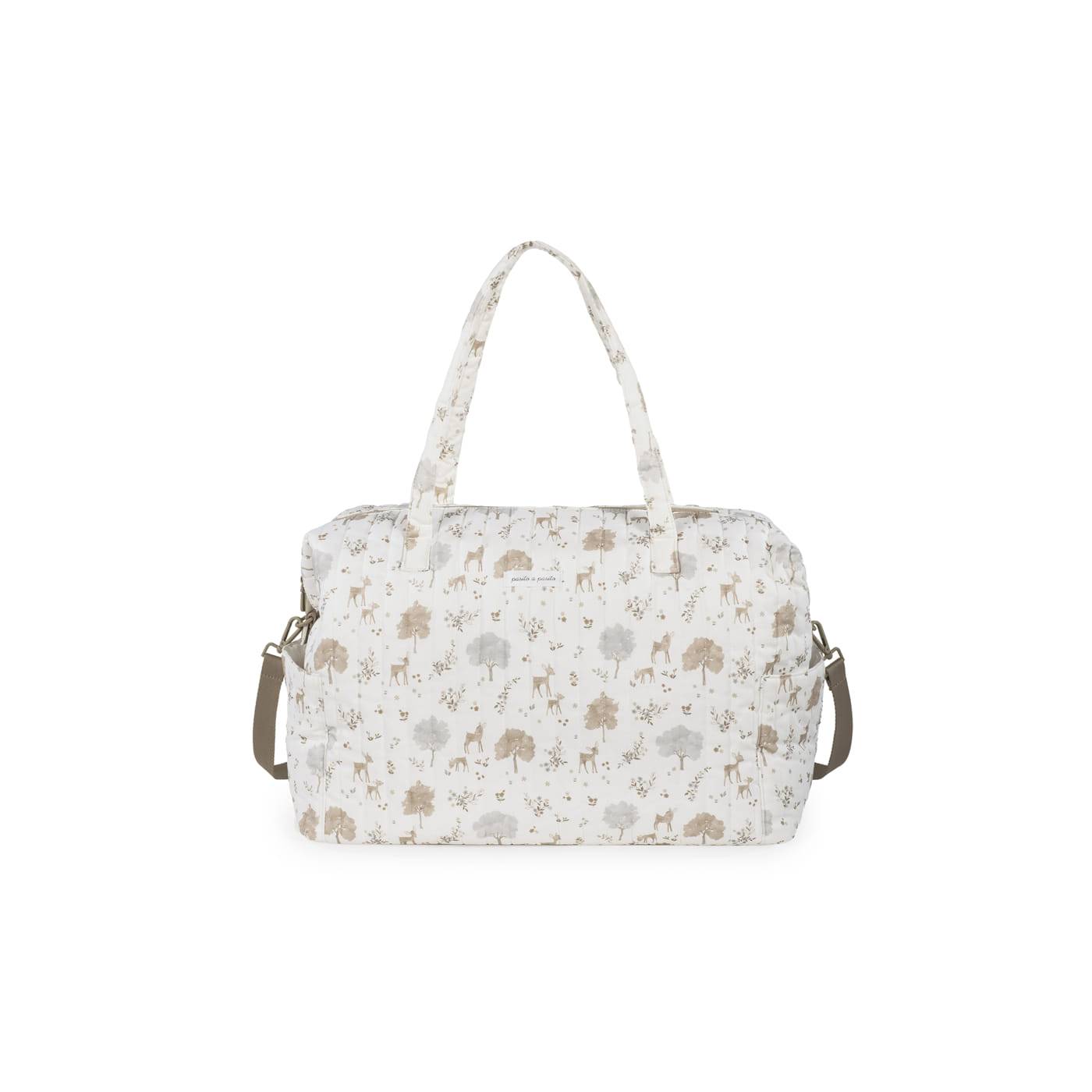 Découvrez la combinaison parfaite du style et de la praticité avec le sac XL Nara de Pasito a Pasito, fabriqué en 100 % coton avec un délicat imprimé de cerfs et d'arbres dans des tons neutres. Le traitement imperméable le rend résistant à l'eau, ce qui garantit sa protection et sa durabilité au quotidien. Son design moderne et spacieux le rend idéal pour les parents à la recherche d'un accessoire polyvalent pour la vie de tous les jours.