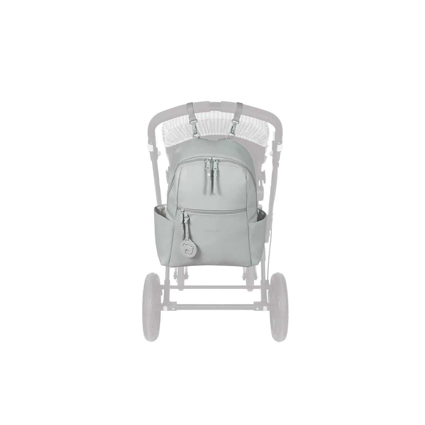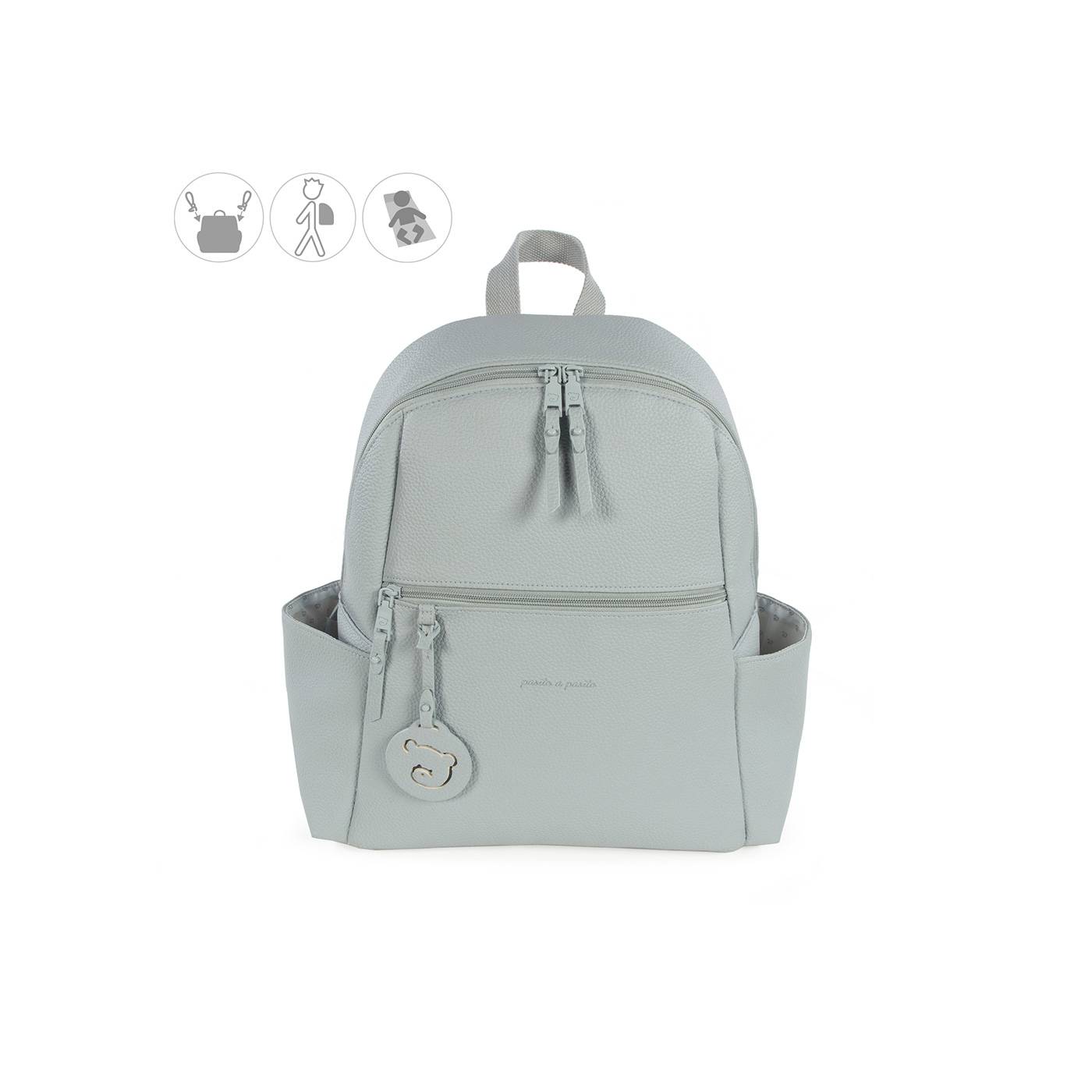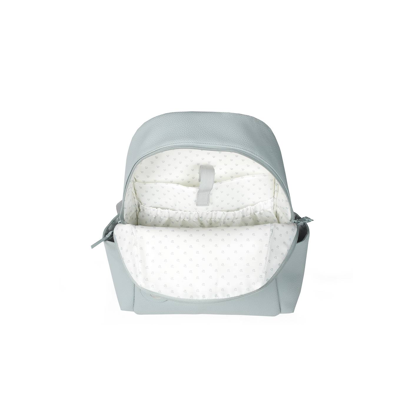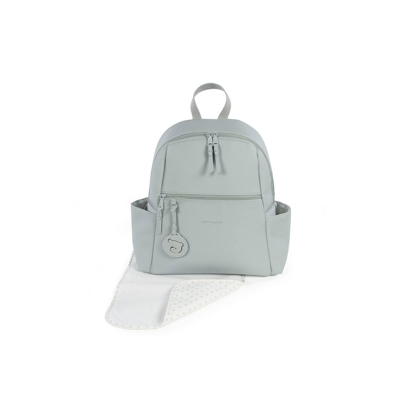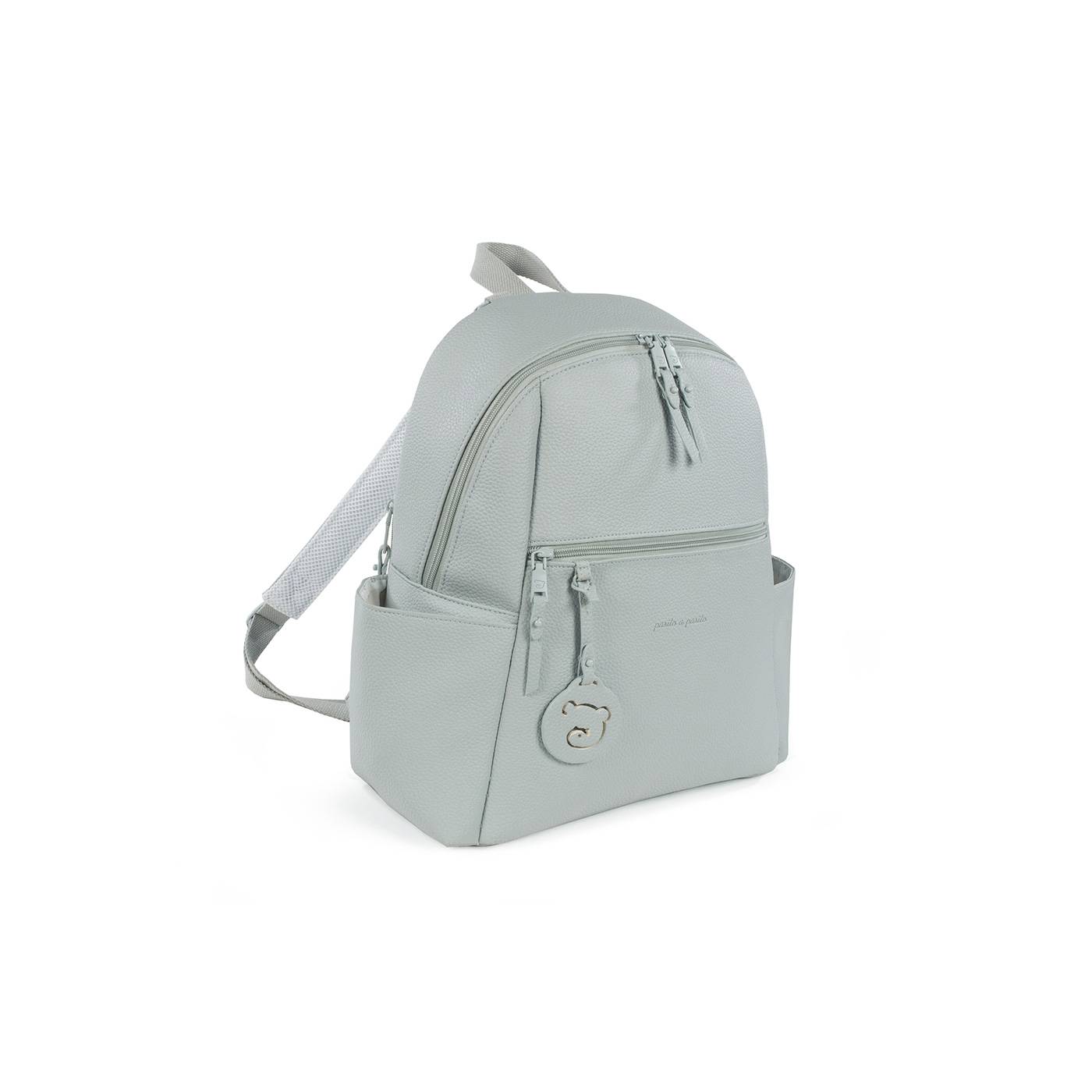 Yummi mint green leatherette backpack. Large capacity to carry everything you and your child need. Inside and outside pockets to keep everything handy and tidy. Compartment for laptop or tablet. Has 2 large adjustable handles so you can use it hanging on the back and two other small handles so you can hang it on the baby carriage. It can be washed by hand or in a washing machine at 30º. The materials used are free of azo dyes, phthalates and substances harmful to health. Dimensions: 30 X 38 X 14 cm. Pasito a pasito changing bags.