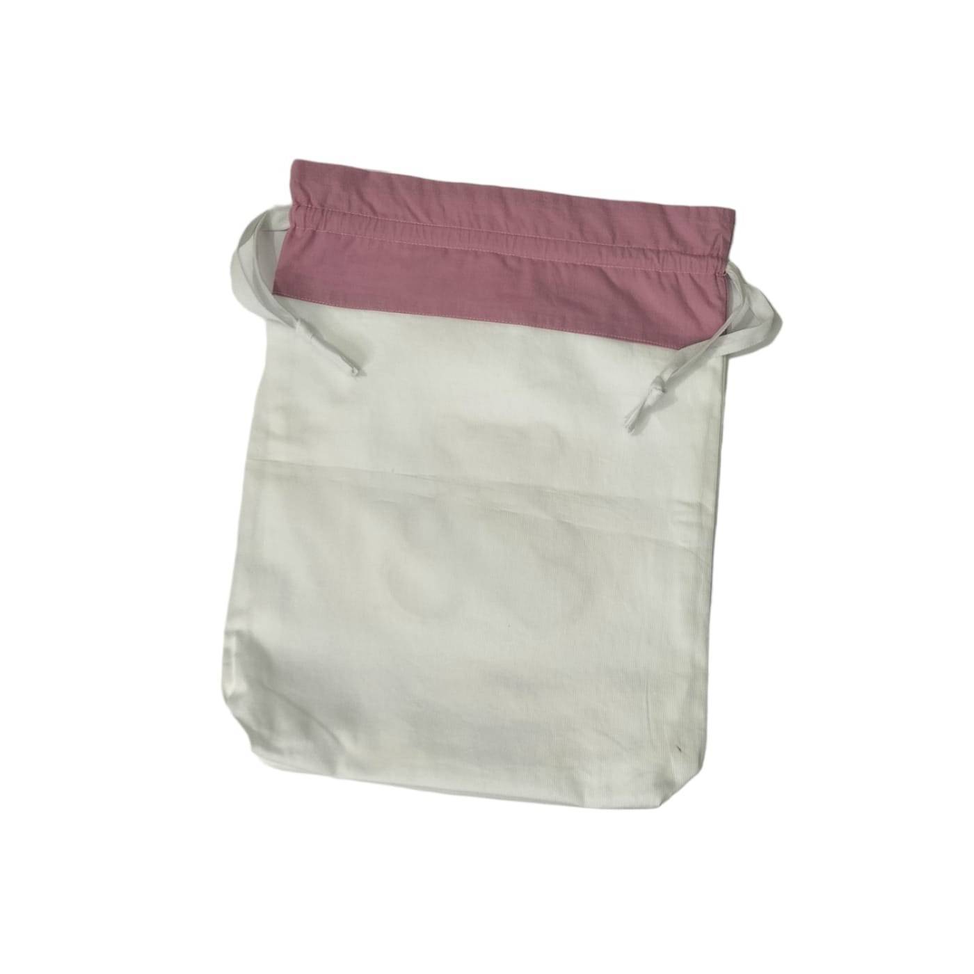 White striped changing bag with teddy bear and plum-coloured 'My Change' inscription. Ideal to take to the hospital for her first changes and later for outings.