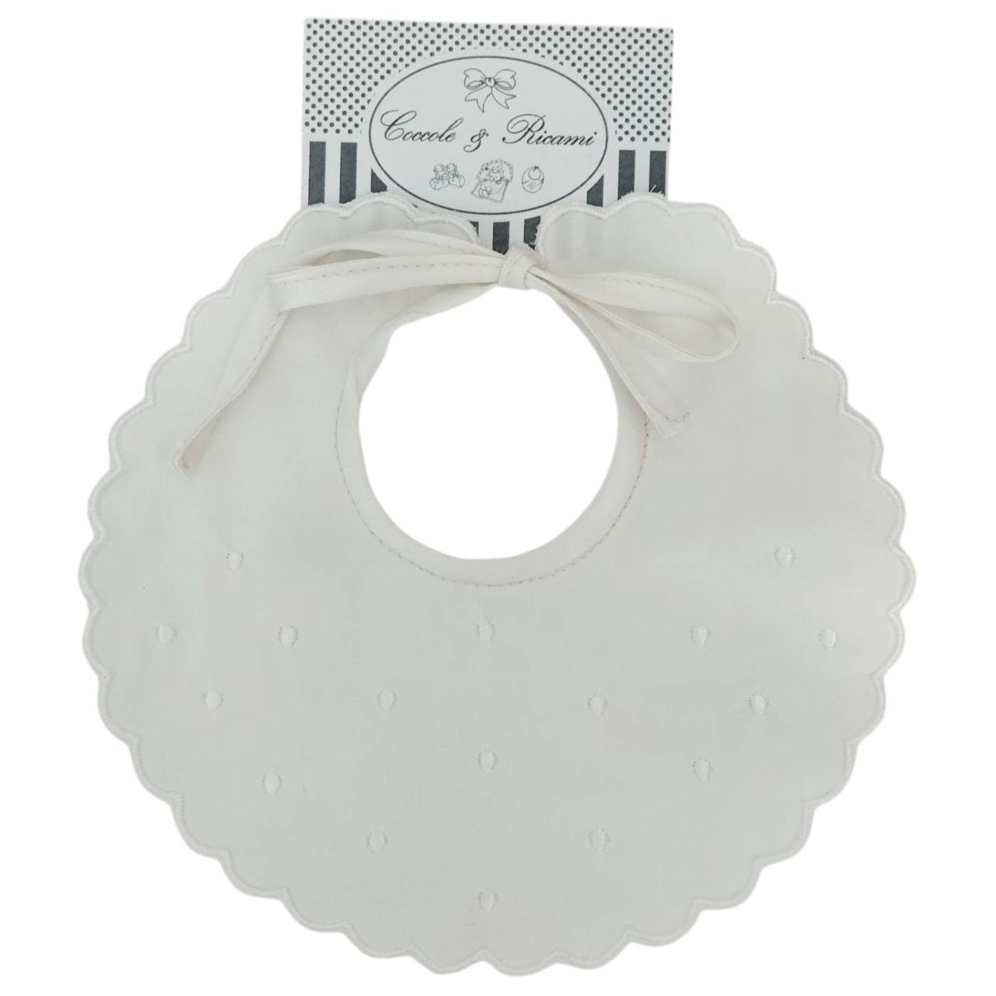 Bib made of white cotton with worked and carved tulle. Reworked with white lace.