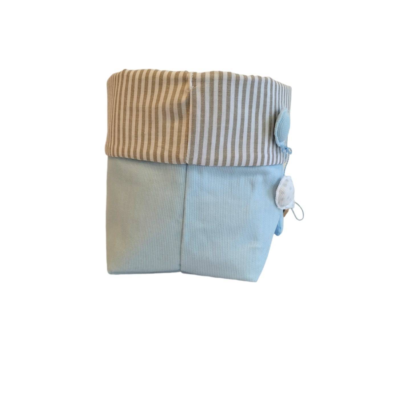 Confetti holder to welcome the baby, made of light blue cotton and contrasting white and dove grey striped cotton, small stuffed teddy bear with balloons enriching the whole. Possibility of inserting the chosen name and coordinating the birth bow. For further information, a telephone contact on whatsapp at 388 8071332 is preferable.