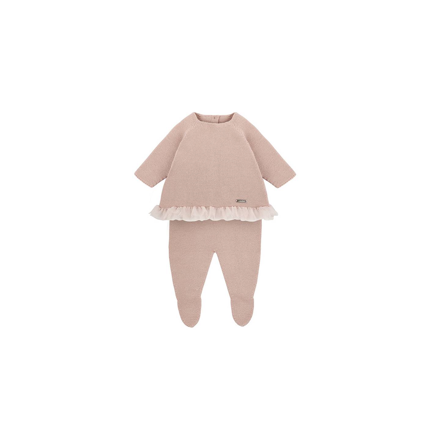 Baby girl set in pink tulle stitch. Jumper plus leggings with feet.