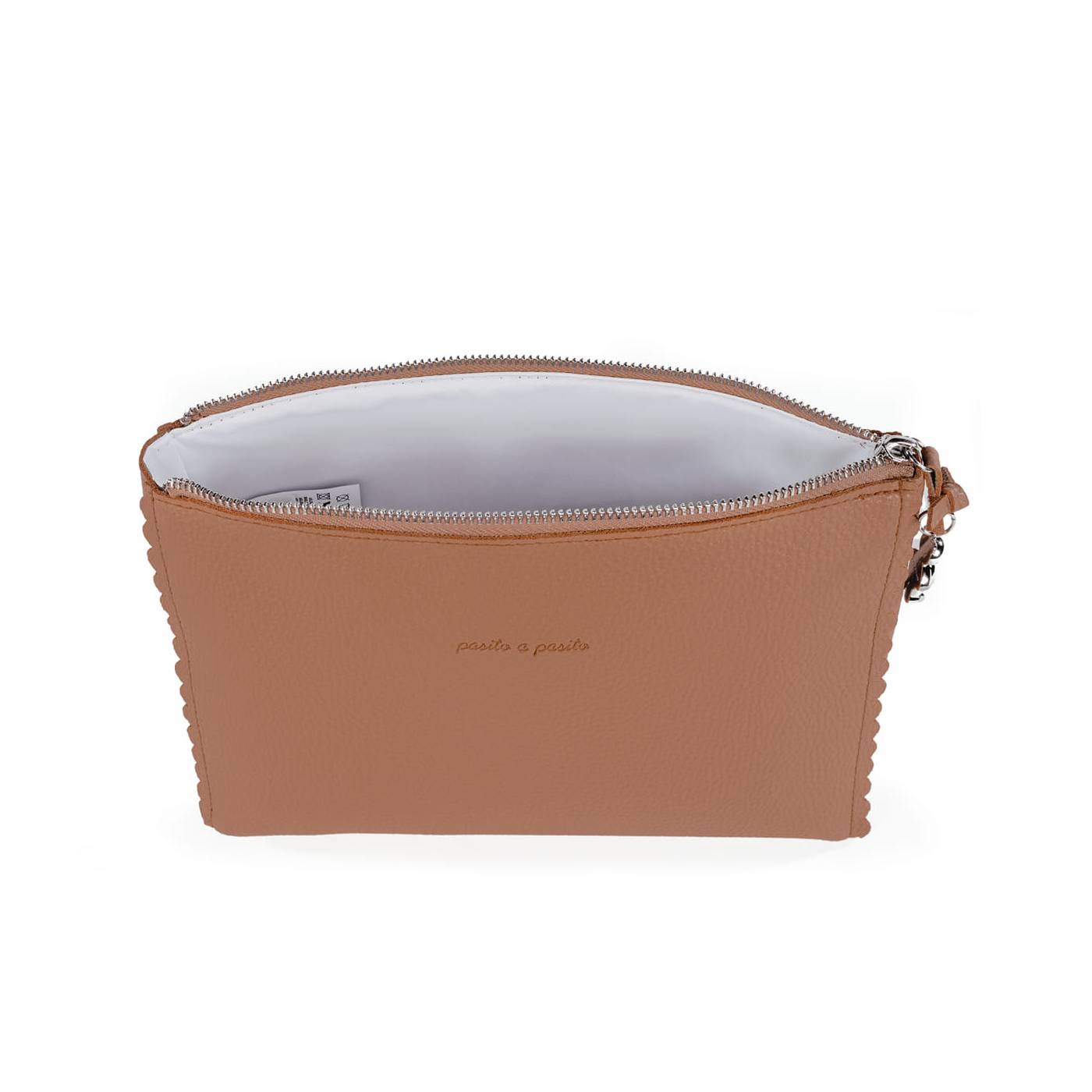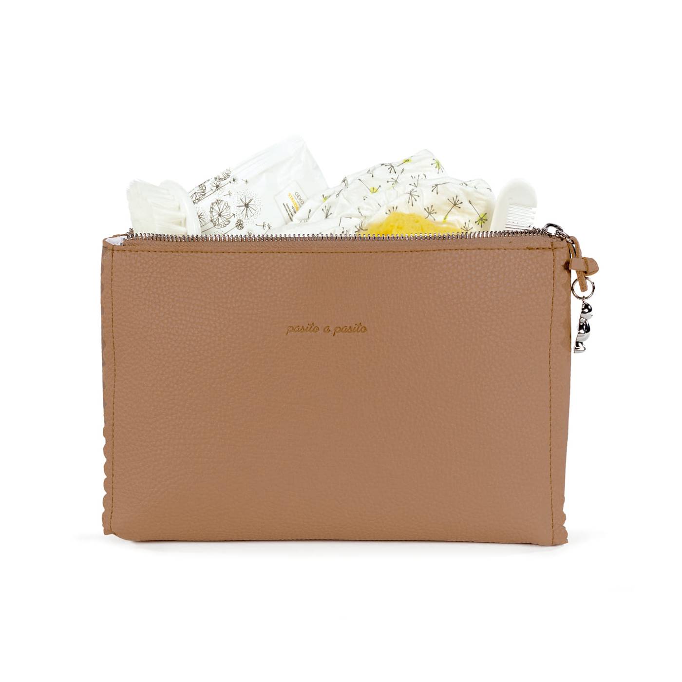 La borsa portaoggetti per neonati Icon caramello di Pasito a Pasito è una piccola borsa appositamente progettata per trasportare tutti i prodotti per la cura del nostro bambino quando si esce di casa. È un modello unico con molto stile per soddisfare le tue esigenze. È realizzata in ecopelle resistente e morbida e ha una forma che si adatta facilmente alla tasca laterale della borsa per il cambio del bambino. È un design bello, semplice e confortevole che offre uno spazio piccolo ma preciso per trasportare esattamente ciò di cui hai bisogno per l’igiene del tuo bambino, come un pettine, creme e altri piccoli oggetti che a volte si perdono all’interno della borsa per il cambio del bambino. Dispone di una chiusura a zip facile da aprire. Finiture di alta qualità. È realizzata con materiali di alta qualità, privi di coloranti azoici, ftalati e sostanze nocive per la salute. Inoltre, può essere lavata a mano o in lavatrice a temperature fino a 30º. I prodotti per bambini di Pasito a Pasito hanno un design molto diverso dagli altri. Le loro collezioni sono caratterizzate da un lavoro meticoloso, sempre progettato da un punto di vista pratico. Utilizzano materiali di alta qualità per enfatizzare l’eleganza e l’armonia in ciascuno dei loro pezzi. I nostri modelli sono esclusivi e hanno uno stile inconfondibile, progettato per le moderne mamme che hanno buon gusto e apprezzano i dettagli tanto quanto noi. Specifiche: Materiali: Ecopelle. Colore: Beige. Misure: 21X18X8 cm.