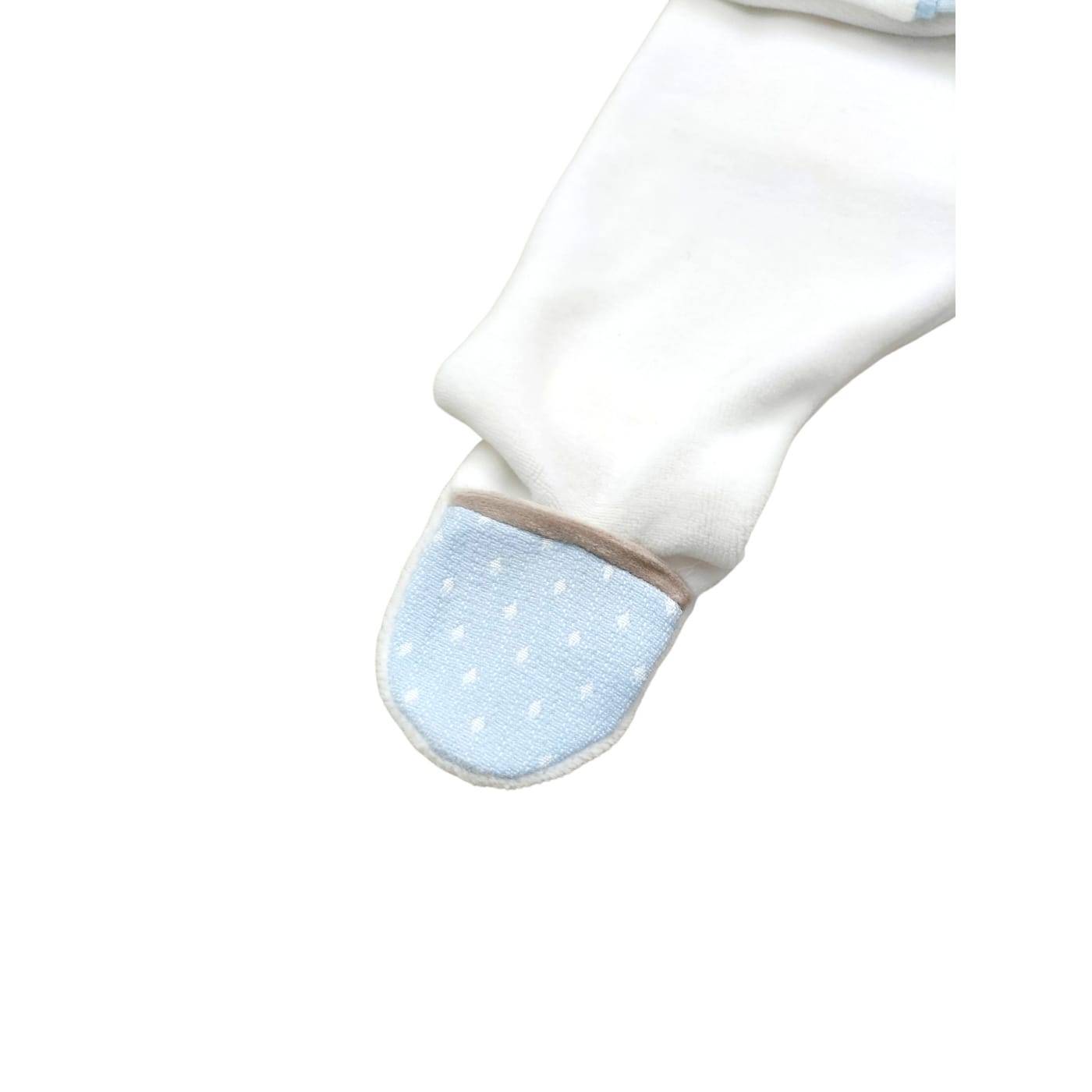Questo set nascita neonato in ciniglia del brand Minù è realizzato con tessuti dai colori tenui bianco, tortora e celeste con piccoli pois bianchi, il che rende il tutto molto delicato e dolce grazie anche al simpatico orsetto che ritroviamo sulla copertina e sul coprifasce.