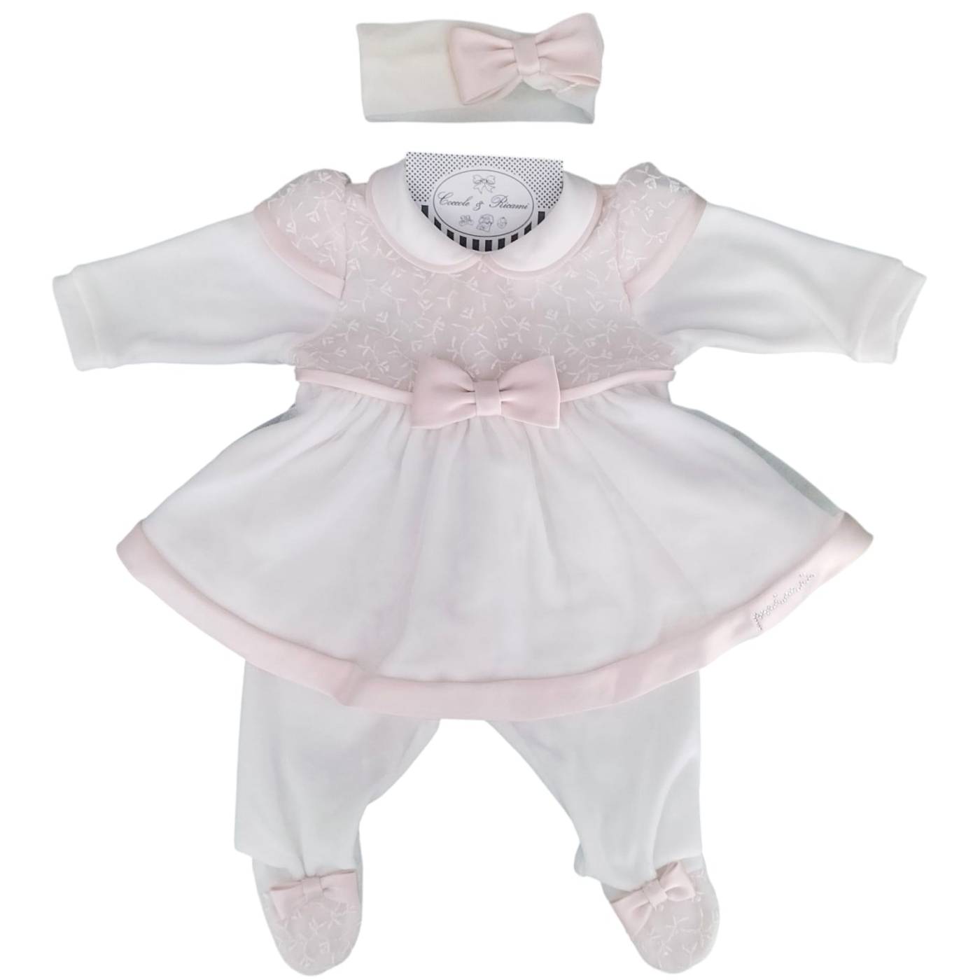 Elegantissimo coprifasce (2 pezzi con ghettina) del brand Minu' curato nei minimi dettagli. Base in ciniglia color bianco latte e arricchito da un fine tulle ricamato sul corpetto e dettagli in raso di seta rosa, continua una finta gonnellina in tulle (sopra a quella in ciniglia) che rende il tutto sontuoso. Se cercate un outfit che renda la vostra piccola bambina una principessa sin dai suoi primi giorni questa è la scelta che fa per voi; il tutto accompagnato dalla fascetta in coordinato.