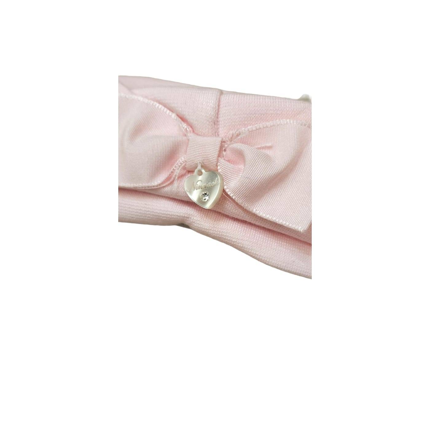 Morbidissima fascetta per capelli del brand Ninnaoh realizzata in cotone elastico color rosa. Al centro presenta un fiocco tono su tono con un piccolo cuoricino con marchio Ninnaoh inciso ed un brillantino. Si presta bene a tutti i tipi di outfit da quello più elegante a quello più casual.