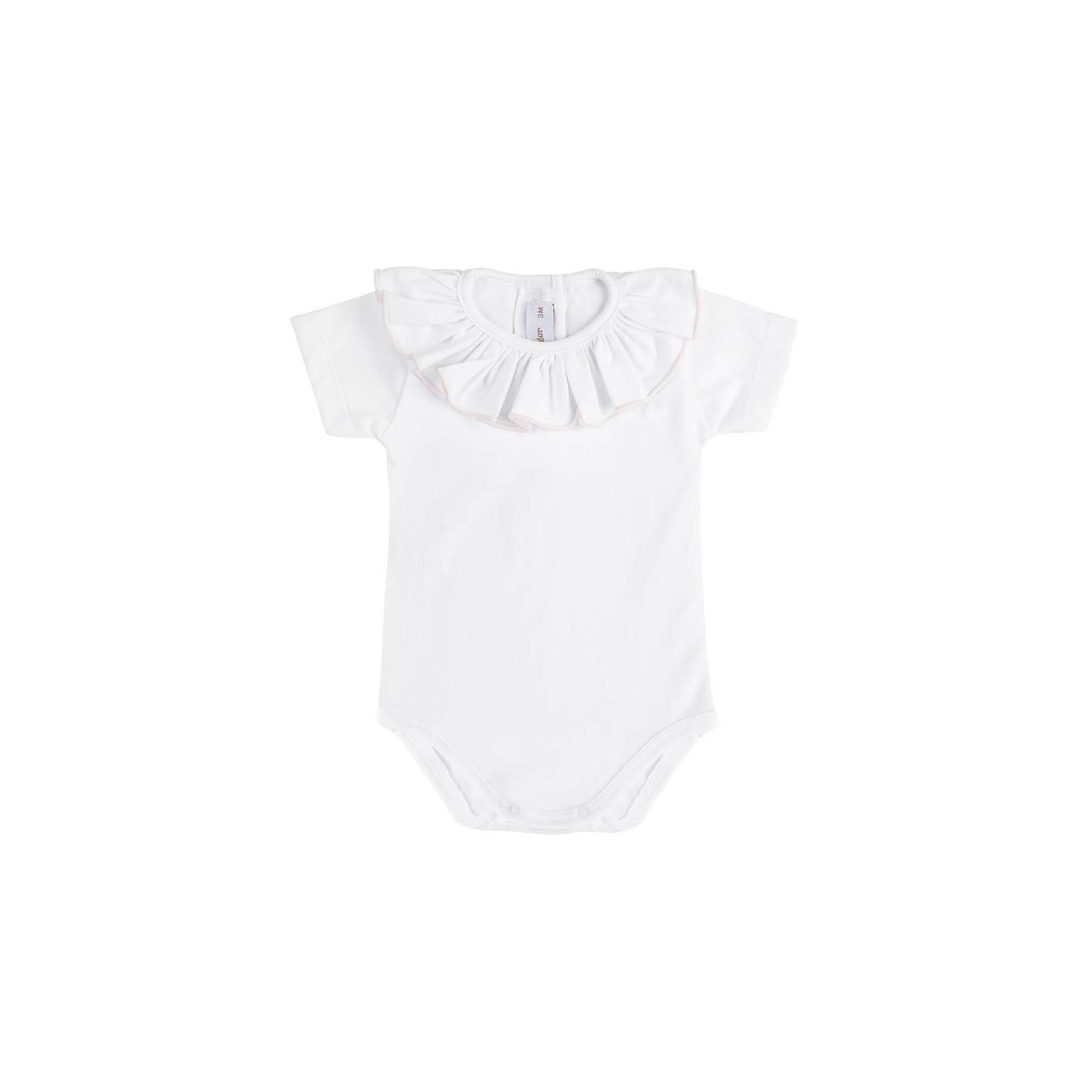 Body e culotte rosa nude per neonata in cotone, il body di colore bianco presenta un collettino smerlato color nude.
