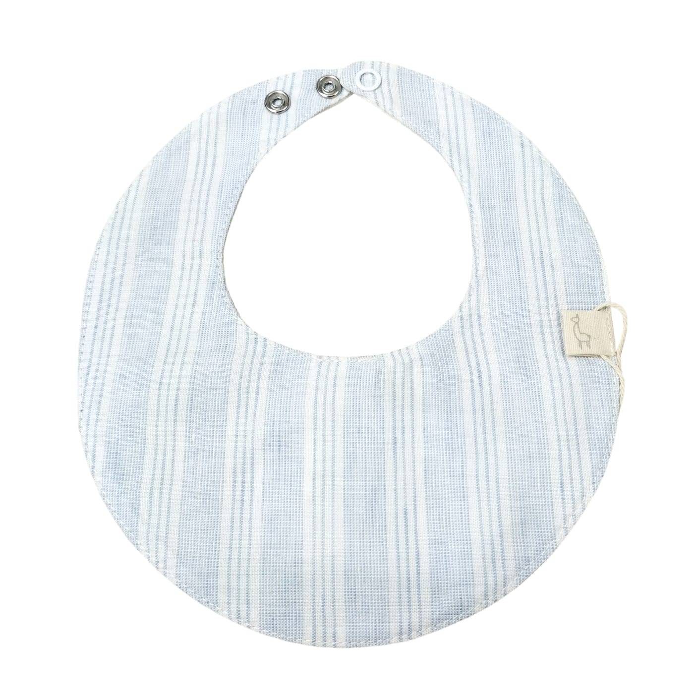 Bavetto per neonato del brand Baby gi realizzato in cotone rigato celeste e panna chiaro.