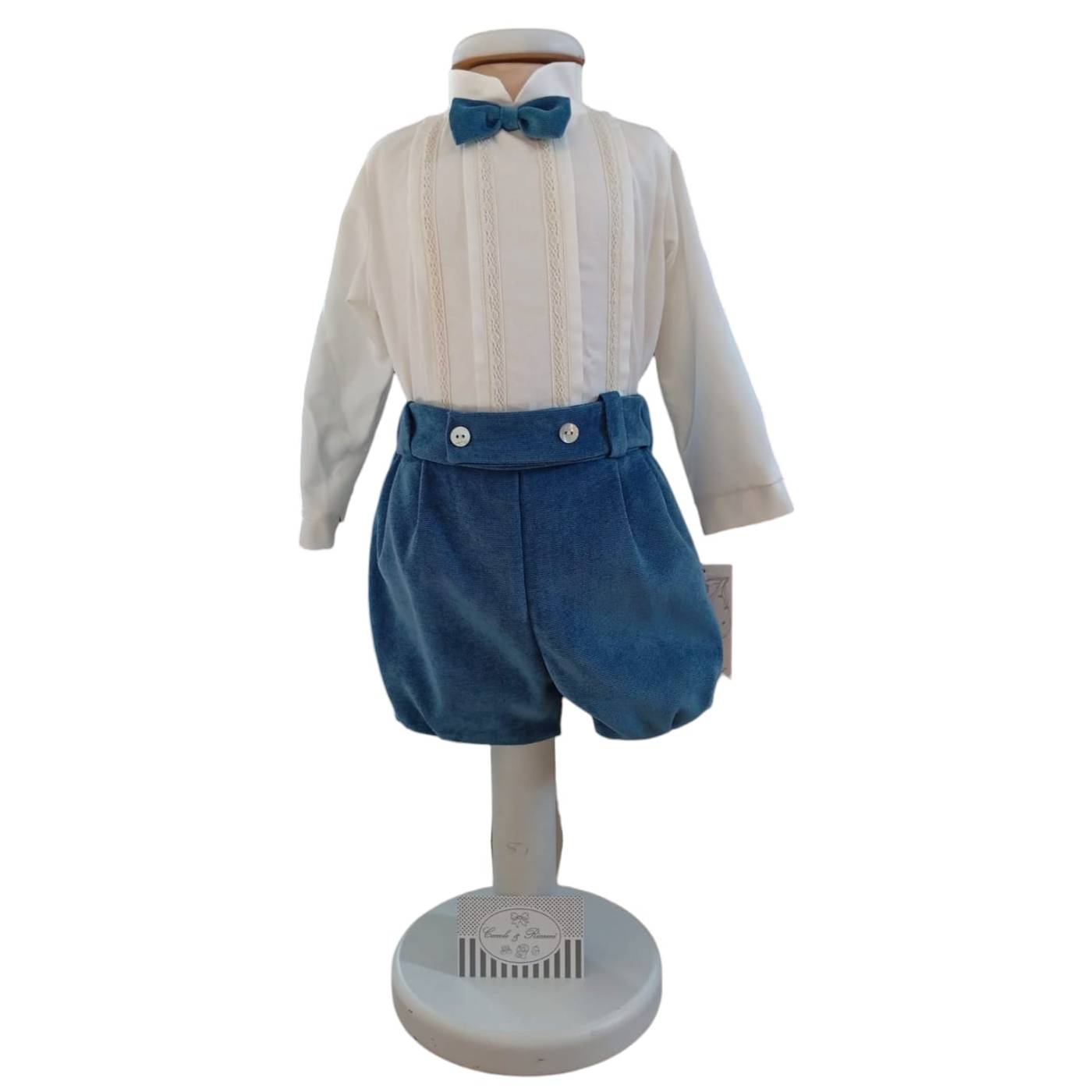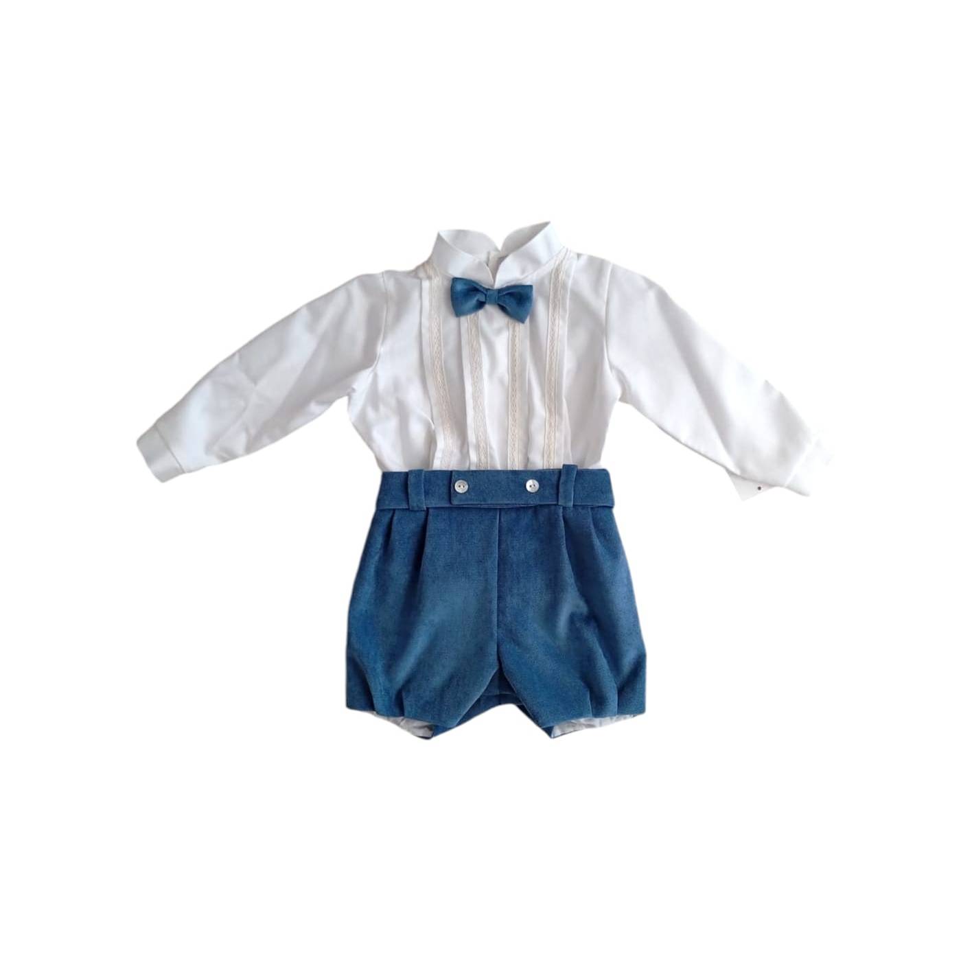 Completo elegante per bambino 3 pezzi con camicia, papillon e bermuda.