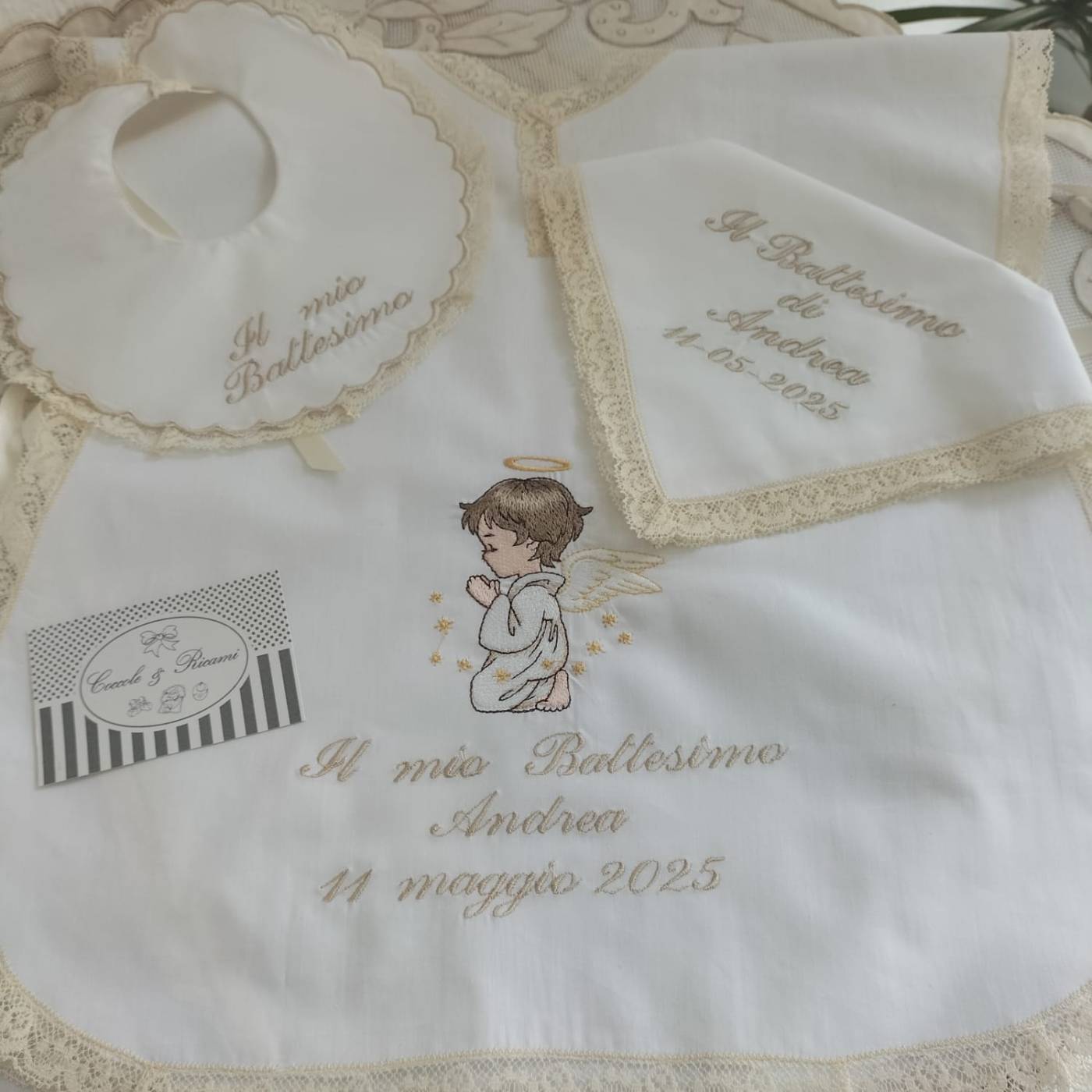Pode inserir o nome do bebé e a data do batizado, para mais informações escreva-nos para o WhatsApp 388 8071332 ou escreva as informações nas notas.