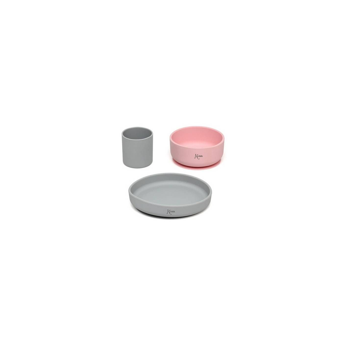 Conjunto de talheres de silicone rosa e cinzento 2 A