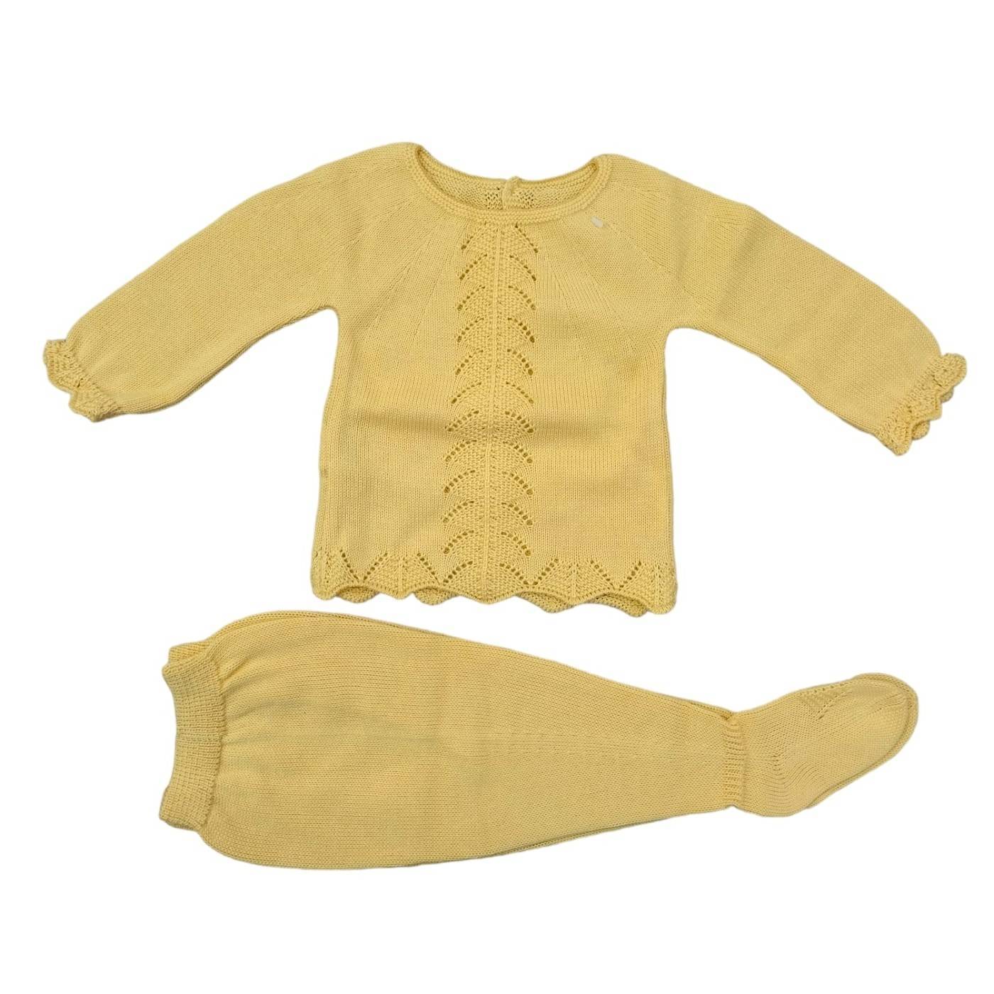 Capa de manga comprida em fio de algodão, tamanho 3 meses, amarela, portanto adequada tanto para menino como para menina. Adequado para os primeiros dias de vida do bebé, em pleno verão, mas também para a primavera e o outono.