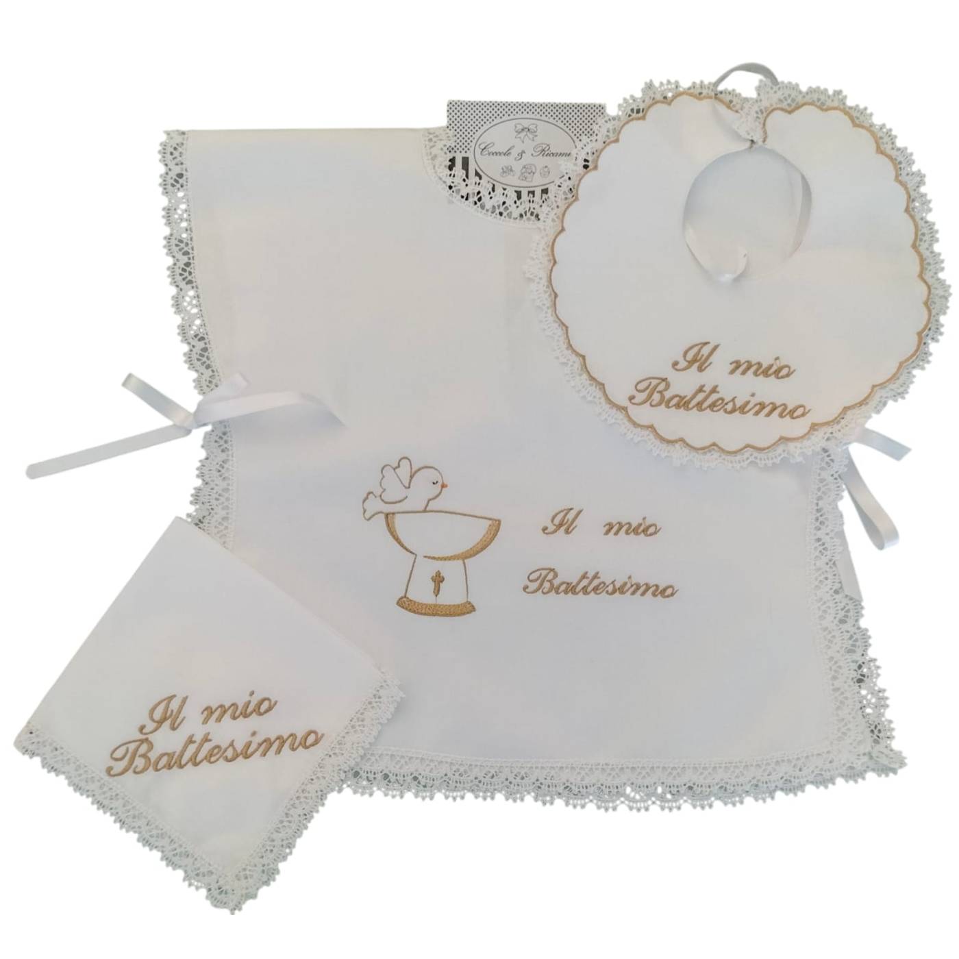 Blusa de batismo com lenço e babete