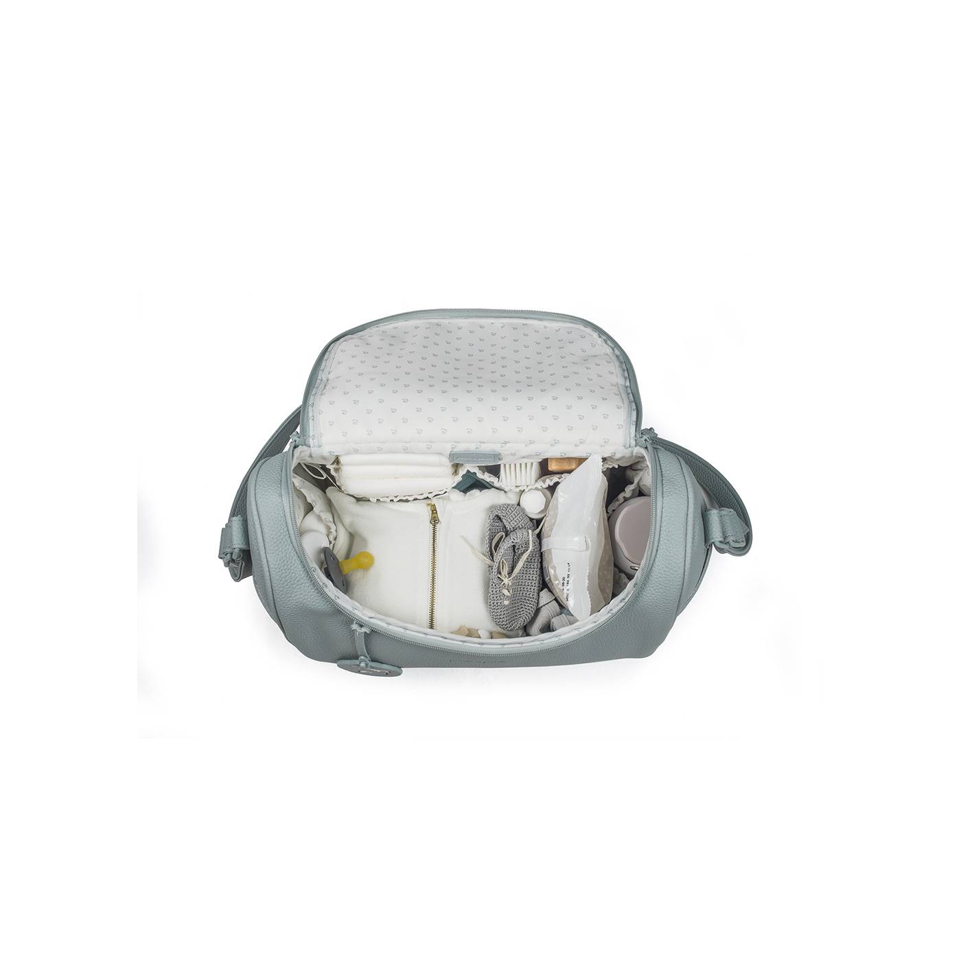 Saco muda-fraldas ou saco para carrinho de bebé Yummi verde menta muito elegante e prático para transportar tudo o que o seu bebé precisa. Inclui mangas compridas para o transportar ao ombro e mangas curtas para o pendurar no carrinho de bebé. Forro interior com bolsos. Pode ser lavado à mão ou à máquina a 30º. Os materiais utilizados são isentos de corantes azóicos, ftalatos e substâncias nocivas para a saúde. Dimensões: 35 X 26 X 21 cm. Saco muda-fraldas Pasito a pasito.