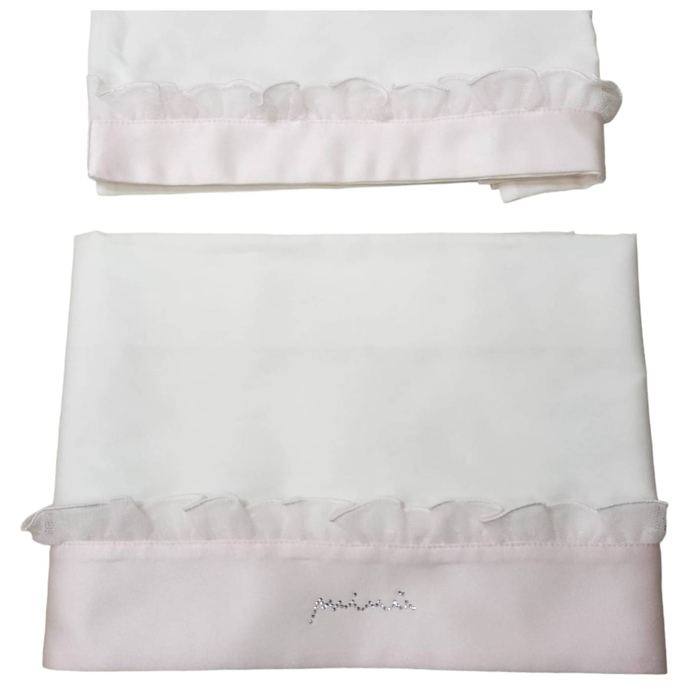Este maravilhoso enxoval para recém-nascido da marca Minù em fio de algodão está completo com tudo: capa de xaile em algodão de dupla camada adornada ao centro com tule e flores em relevo; lençol de 3 peças em batiste de algodão com fronha e parte inferior com cantos redefinidos com cetim rosa e tule rouge; muito elegante colcha de 2 peças em malha e ghettina, esta última em jersey de algodão, enquanto a parte superior da malha de fio, inteiramente revestida a tule, tem flores na parte final, medindo 1 mês correspondente a 50/56 centímetros; por fim, acessórios como babete, bandolete e botinhas completam este conjunto coordenado muito sofisticado.