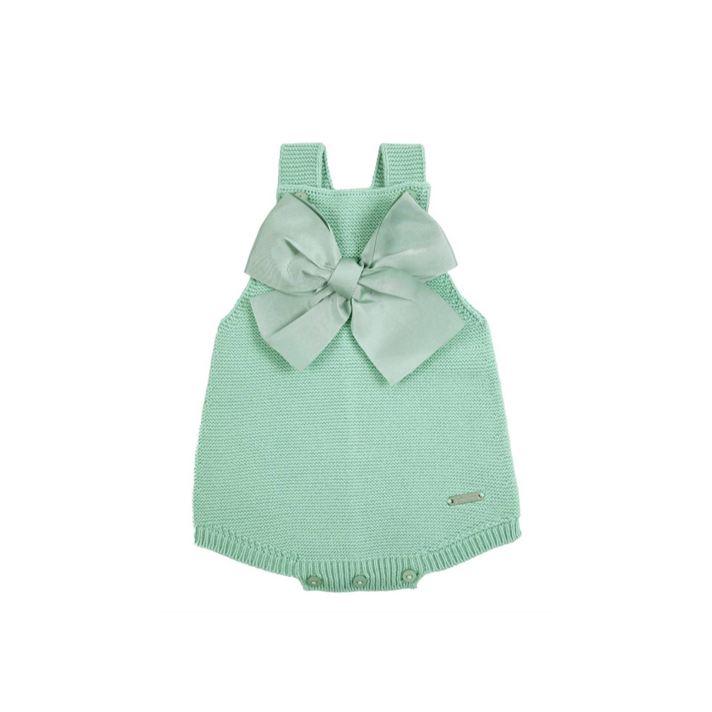 Fatinho de bebé em fio de algodão rosa nude com um grande laço de gorgorão no peito.