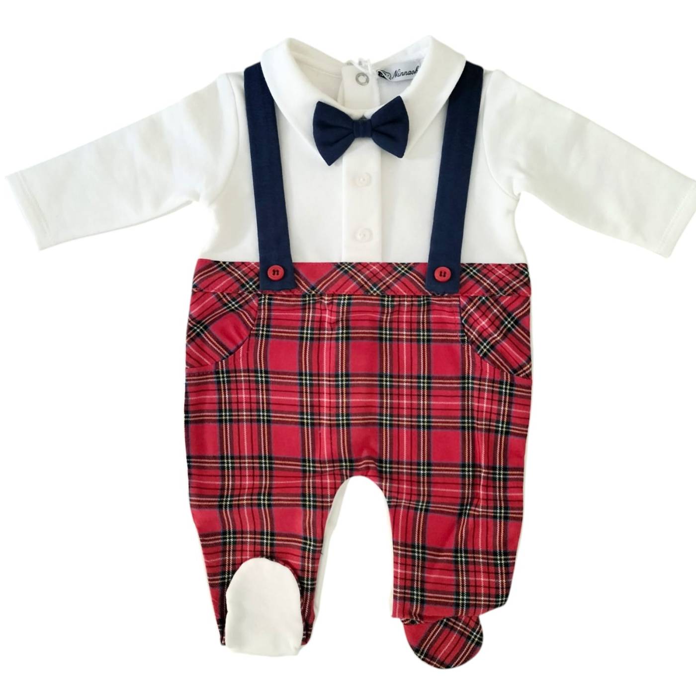 Algodão macio e quente alternado com tartan, um clássico de Natal. Com este fato de dormir, o seu filho estará confortável e com estilo ao mesmo tempo.