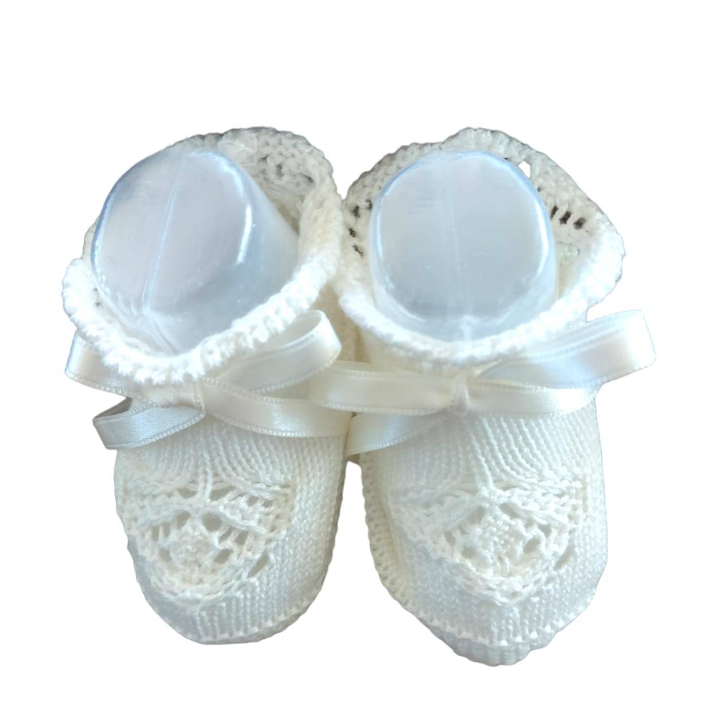Chinelo macio em lã creme claro, adequado para meninos e meninas, para ser usado desde os primeiros dias de vida do bebé.